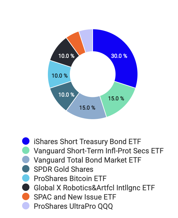 Я не стал включать в него криптовалюты и AI, потому что для целей бэктеста, как мы видели выше, это бы сильно исказило картину. Но, учитывая, что облигации сейчас ведут себя также как акции, но еще и дают худшую доходность — именно эти 25% я бы первыми рассматривал на замену. Сюда смотрится еще 5% биткоина и 5-10% каких-нибудь человекоподобных роботов или GLP-1 агонистов.