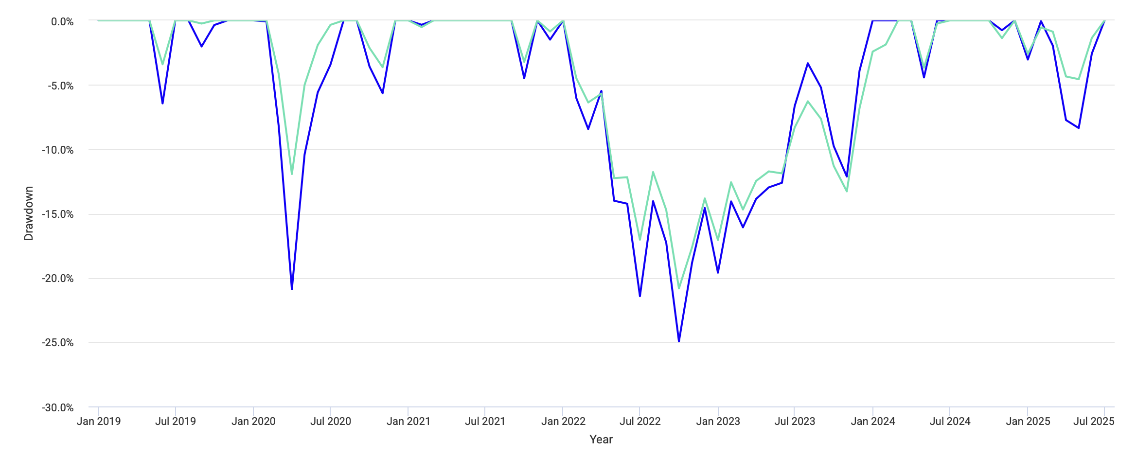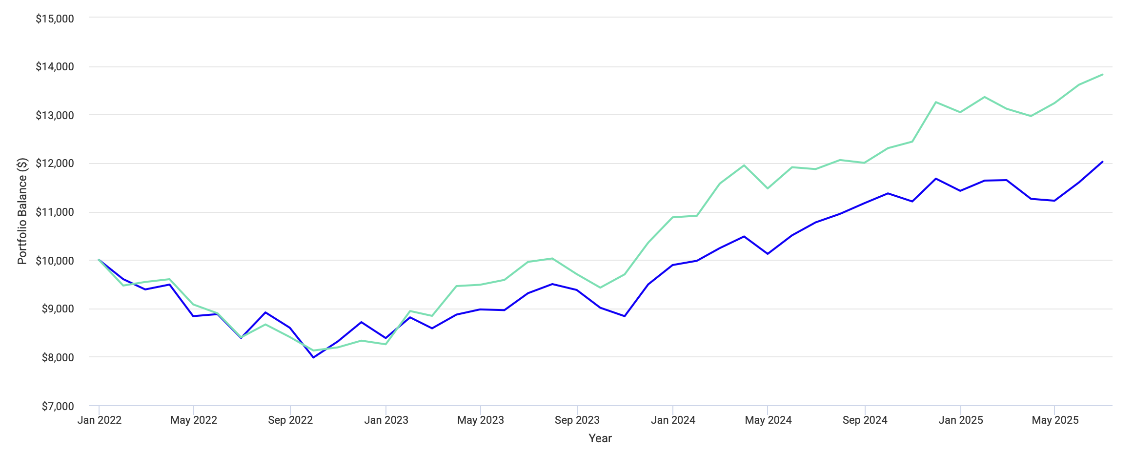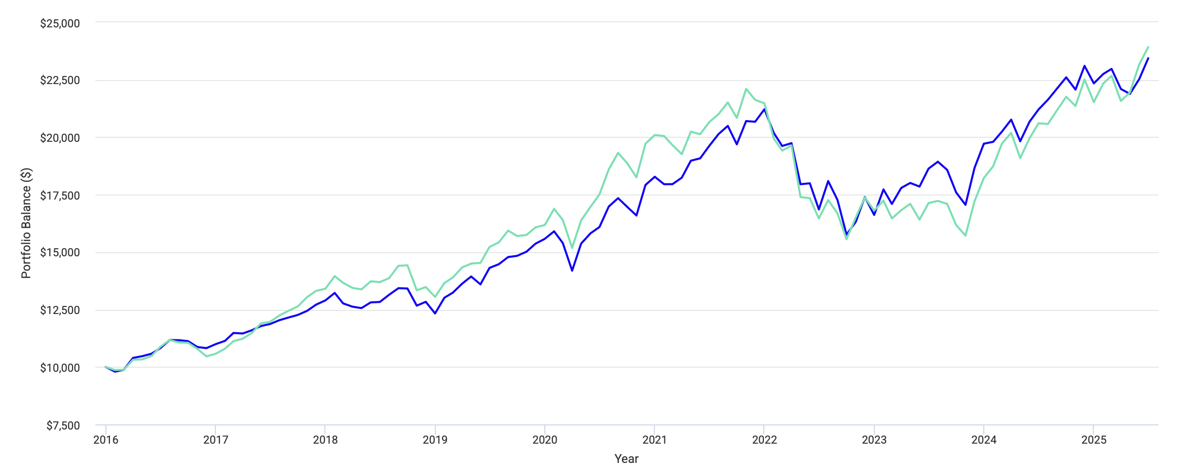 До 2021 года оба портфеля работали примерно одинаково с небольшим преимуществом у глобального портфеля в виде более низкой волатильности. Но затем между ними образовалась огромная пропасть. Это привело к тому, что вместо плановой доходности в 8-9%, я бы получил только 6.41%, в то время как 60/40 закончил период с результатом 9.47%.
