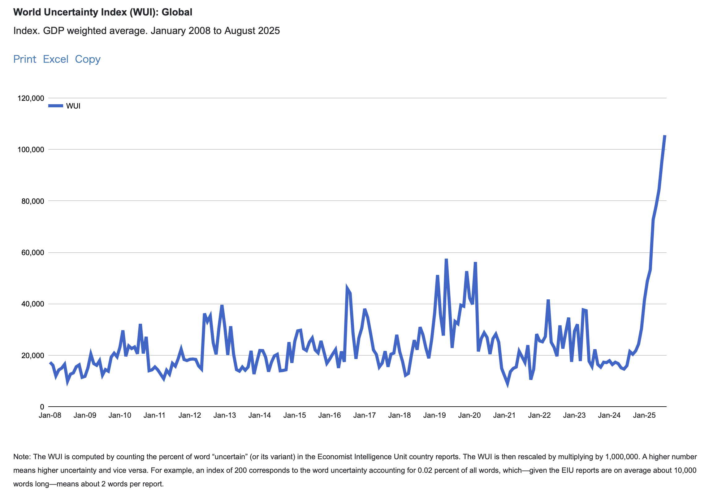 Мы уже видели свидетельства того, что идет бегство из доллара в золото. На базовом уровне — снижается доверие к западным государственным институтам. Я наткнулся на индексы, которые подтверждают беспрецедентную Неопределенность.