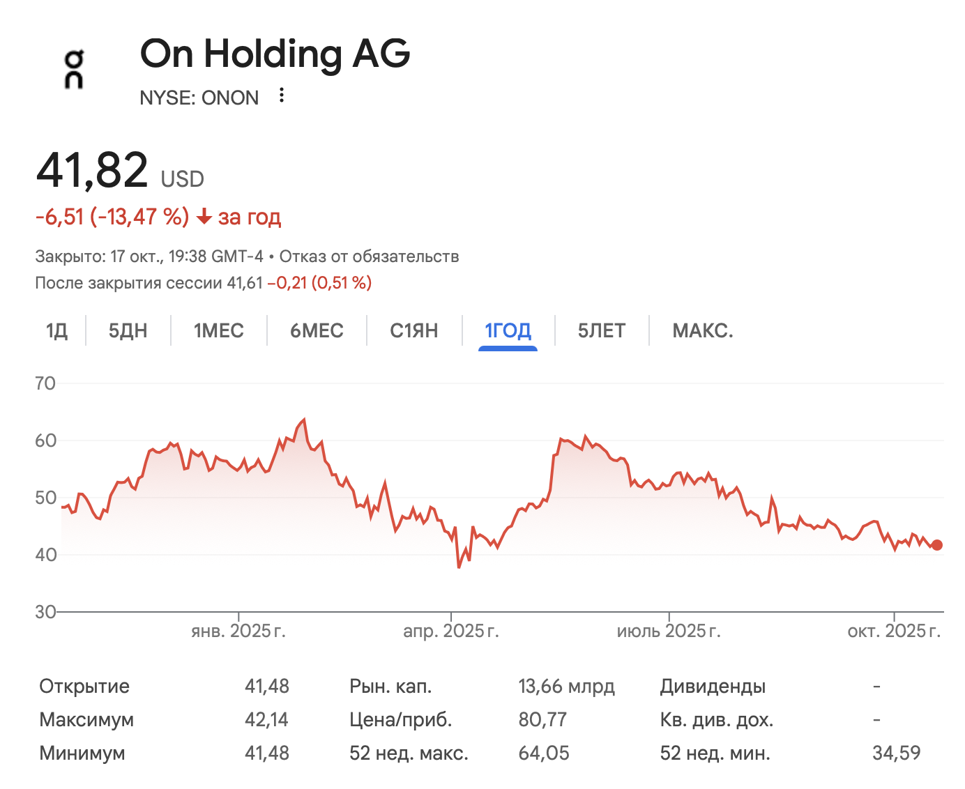 Еще одна кроссовочная тема. On это сравнительно новый кроссовочный бренд. История о том, как к кроссовкам приклеили разрезанный садовый шланг хорошо известна в триатлонном комьюнити. А вот когда они попали в мейнстрим и начали появляться на всех подряд — тогда я и стал смотреть не торгуются ли они на фондовом рынке.