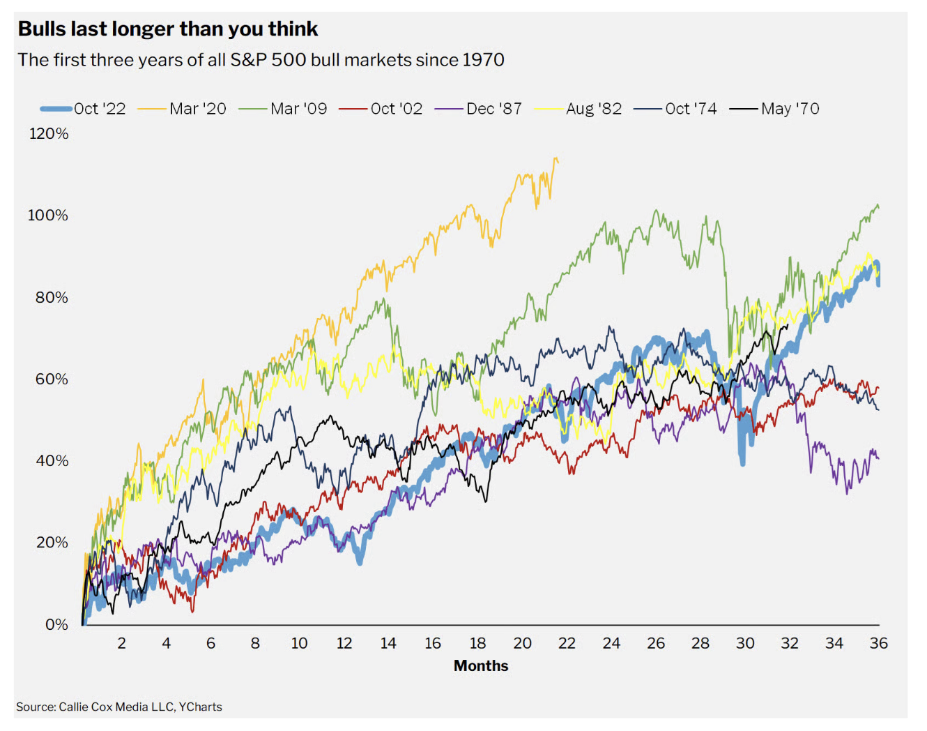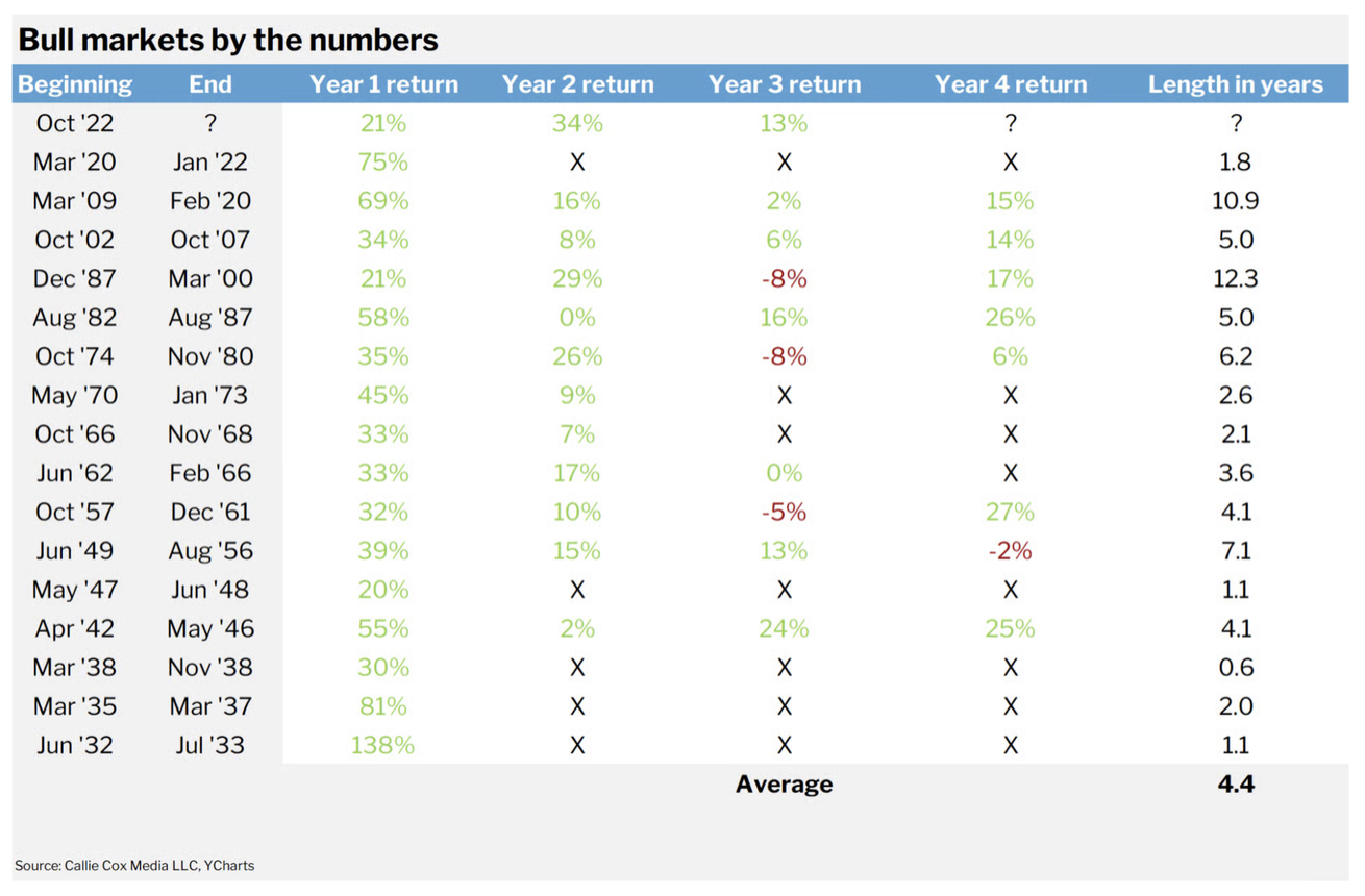 Самый долгий бычий рынок из анализа Callie Cox — больше 12 лет. Последний известный среднему молодому инвестору — 11 лет с 2009 года.