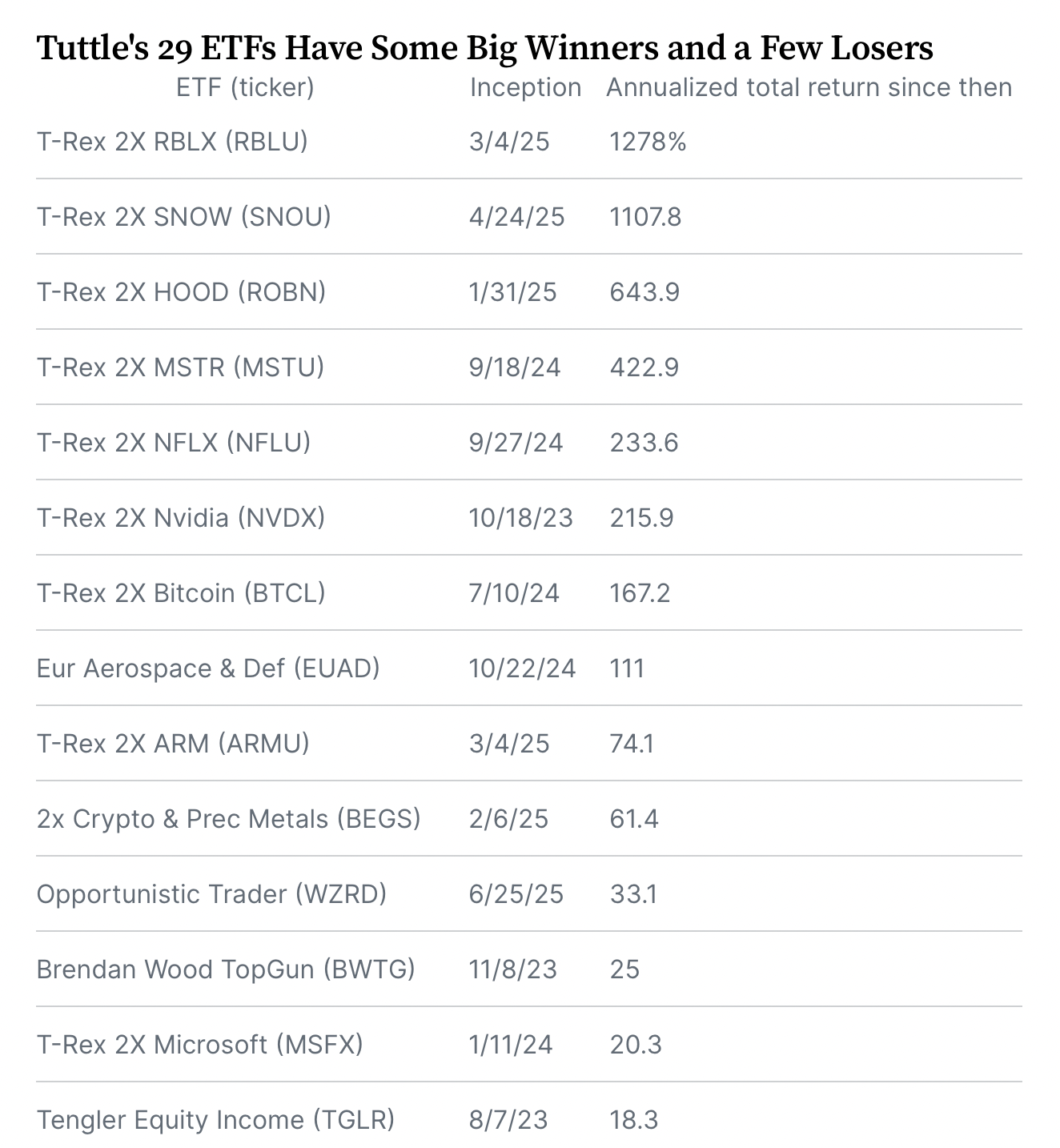 Но есть и еще более веселые инструменты, которые появились относительно недавно — это Single-Stock Leveraged ETF. Основная идея здесь в том, что в ETF упаковывается одна единственная акция, все с тем же плечом.