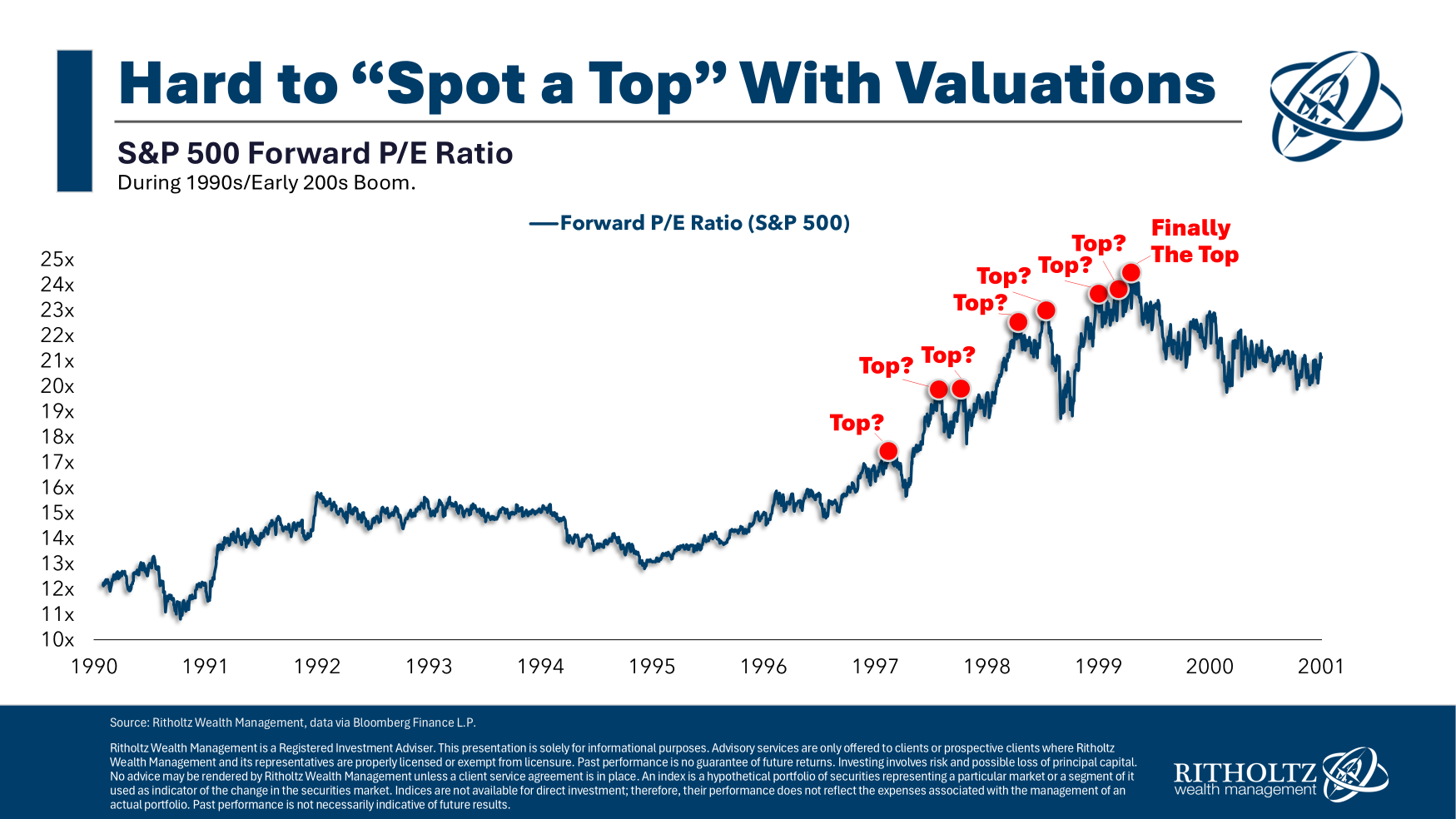 И если посмотреть на то, как пытались предсказывать конец бычьего рынка 87 года — понадобилось 3 года высоких P/E чтобы все наконец схлопнулось. Сейчас forward P/E порядка 24. Но и времена сильно другие, состав S&P500 изменился.