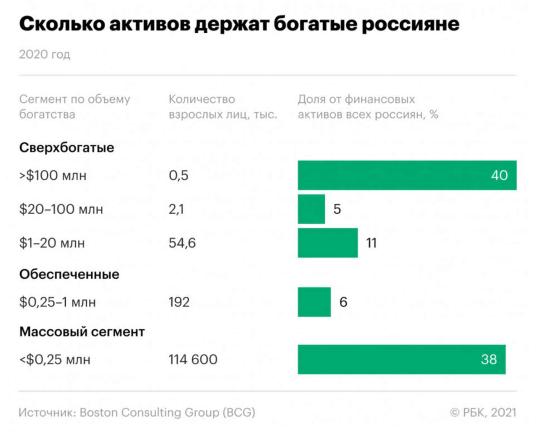 Мне стало интересно, как обстоят дела в России. Самое последнее достоверное, что я нашел — это исследование BCG по распределению благосостояния.