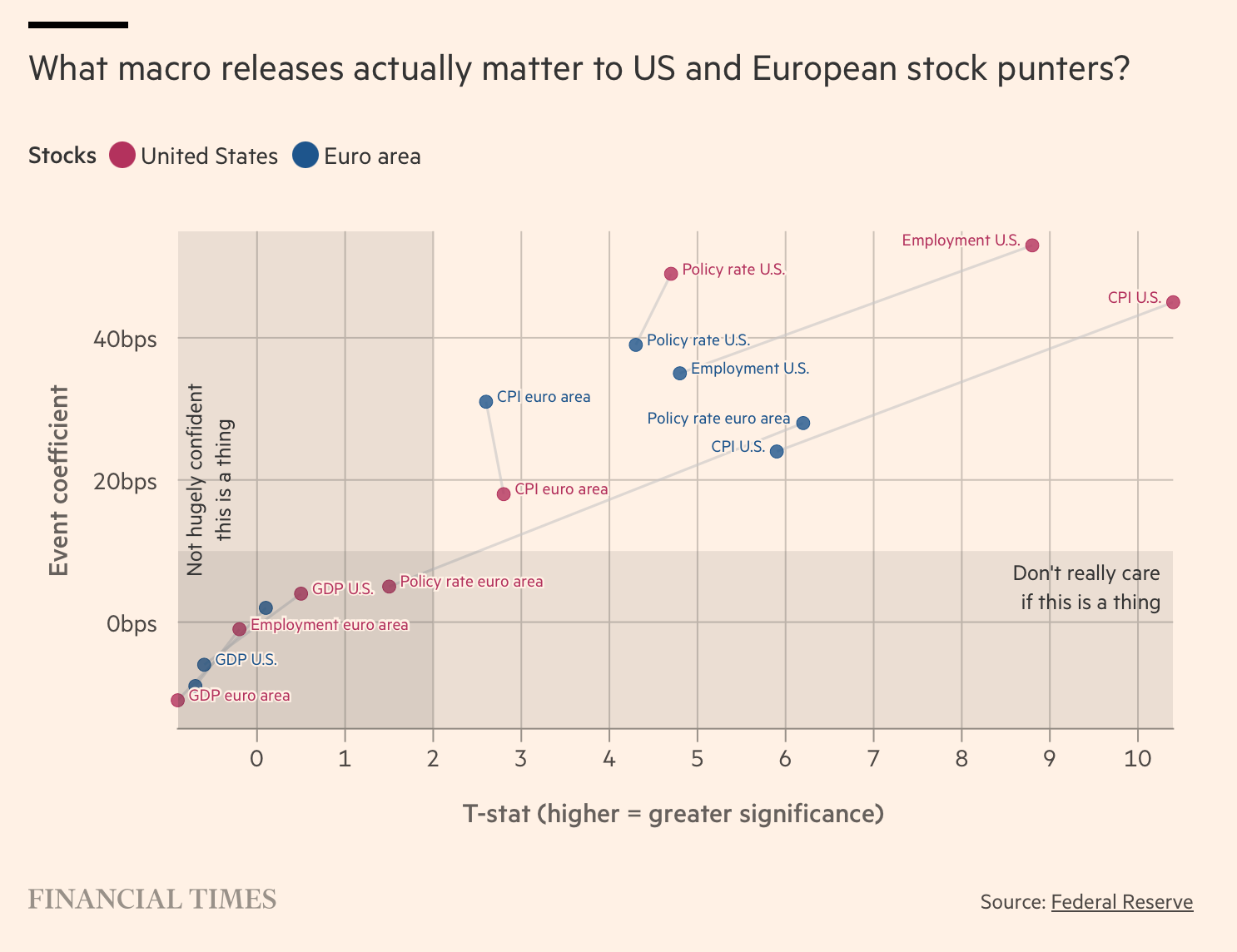 Статистика по ВВП, данные по Европе — практически никак. Зато американский CPI, ставка, данные по рабочим местам — все приводит к прямым и статистически заметным эффектам.